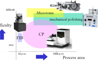 직접적인 영향을 미칩니다. 거칠기, 오염, 표면 손상 등의 결함은 미세한 세부 형상을 가릴 수 있으며 데이터 불일치로 이어질 수 있습니다.그림1. 시료 전처리 장비 비교시료를 분석하기 위한 전처리 장비는 여러가지가 있습니다. 기본적으로 큰 시료를 절단하는 절단기(Microtome, Micro saw, Sawing machine), 단면을 매끄럽게 가공하는 연마기(Mechanical polishing, Ion beam polishing)등이 있습니다.이온 빔 연마(Ion beam polishing)는 이온을 정밀하게